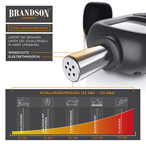 Brandson – Schallpegelmessgerät digital – Lautstärke Messgerät – Schallpegelmesser – digital sound meter – vorab kalibriert geeicht – 35 dB(A) bis 130 dB(A) – Windschutz – LCD-Display